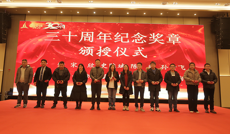 為紀(jì)念“江蘇交通工程投資咨詢有限公司”成立30周年。公司以純金制作的“蘇交咨30周年紀(jì)念章”為載體,對加入“蘇交咨”的員工予以表彰。公司創(chuàng)始人張申林向滿一定年限的員工現(xiàn)場頒發(fā)了紀(jì)念獎?wù),并致以美好的祝愿?/span>